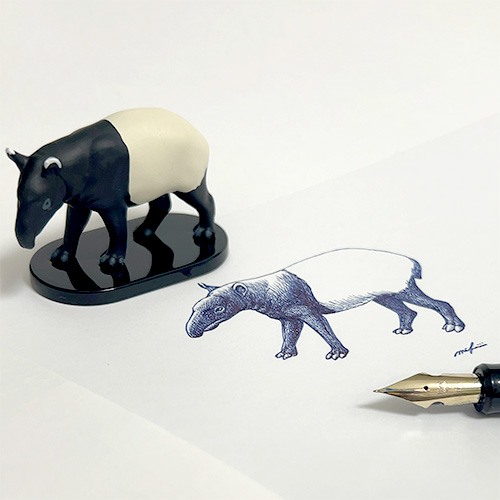 カプセルトイを回すのが好きです。何が出るのかワクワクです。海洋堂の「復刻 クリエイターズグリコのおもちゃだけ 第1弾」を回したら、マレーバグが出てきました。万年筆で描いてみました。